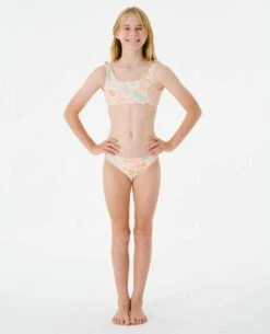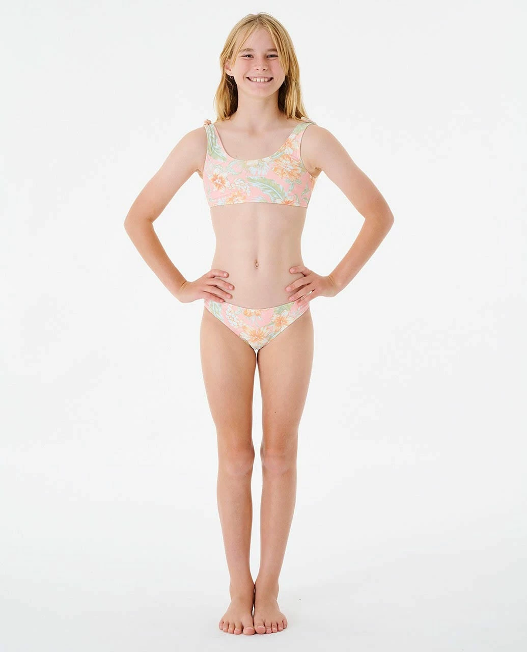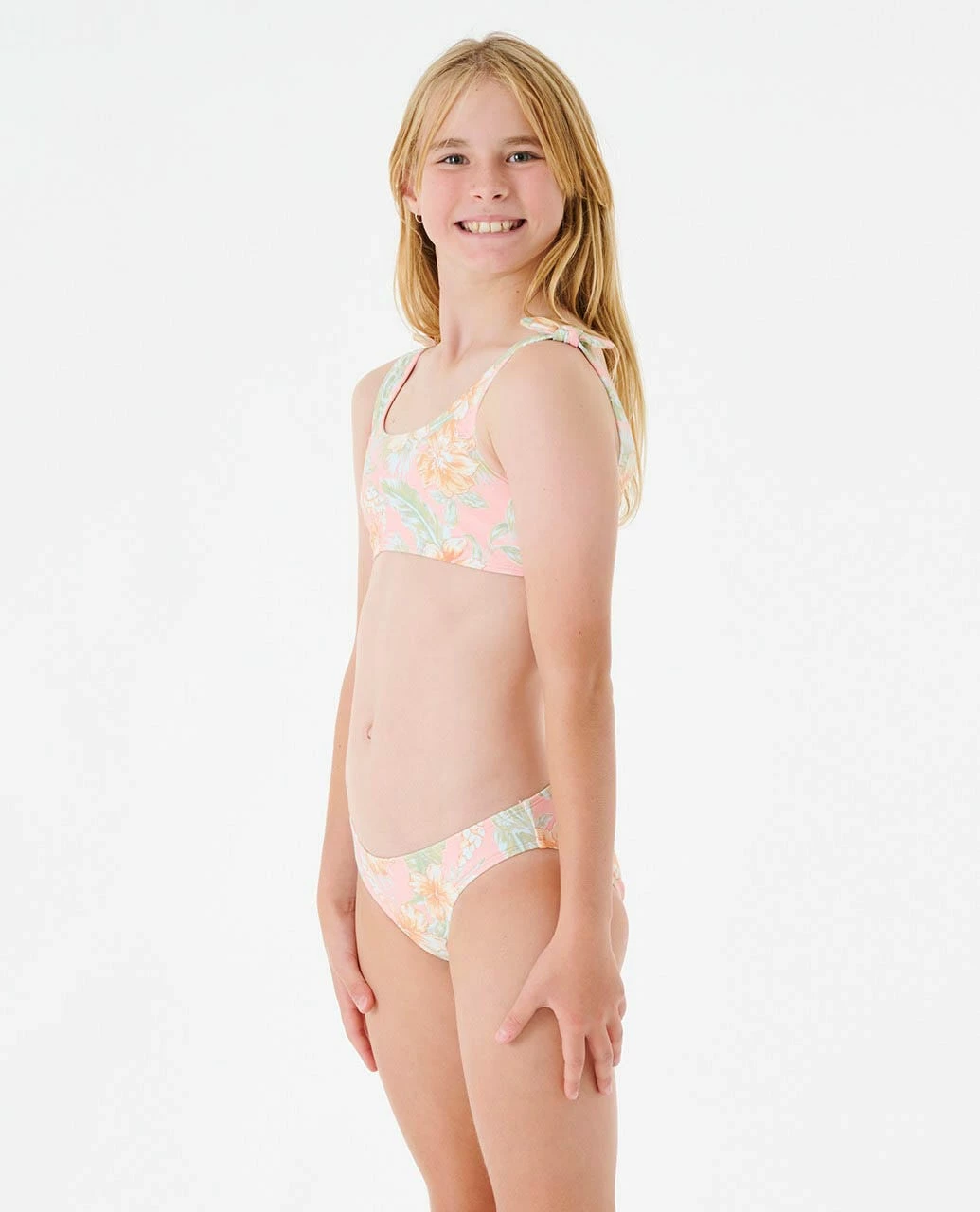 The latest in the Saltwater Culture range, Always Summer, lets you bask in those carefree summer vibes all year round. Made from Extra Life Microfibre Lycra that gives long-lasting comfort, fit and shape with no bagging or sagging. This girl’s bikini set is a gorgeous swim set featuring full coverage and a fully lined seat, with tropical prints, complimented by timeless tones and textures in exceptional fabrication, it’s all golden.
