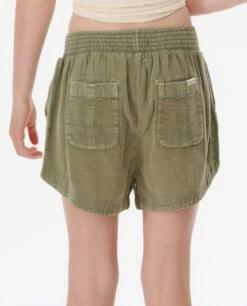 Features: Cotton canvas, Mineral wash, Short fit, 3” length, Elastic waistband, Woven label on back pocket.