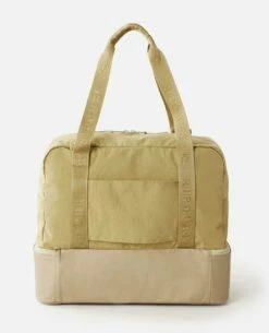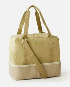 Travel in style with the Coastal Sun 43L Duffle Bag. This oversized travel bag features a zipper closure for secure storage. With multiple sections and an internal pocket, it offers ample space to organize your belongings. The silicon badge adds a touch of coastal-inspired charm, while the external zip pocket/separate shoe pocket provides convenient access to essentials.