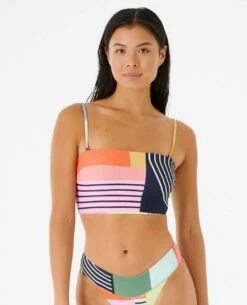 The Daybreak Long Line Bandeau is an epic women’s bikini top made from Extra Life Microfibre Lycra that gives long-lasting comfort, fit and shape with no bagging or sagging. Featuring a colourful asym stripe design, it’s fully adjustable, offering light support, and removeable padding and straps.