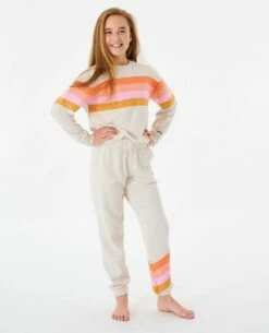 The Daybreak Track Pant is a rad Rip Curl girl’s style featuring a timeless stripe design with elasticated cuffs and waistband, and embroidered logo. Featuring a burnout garment wash finish to give it that vintage appeal, and made in a relaxed fit perfect for lounging in ultimate comfort.