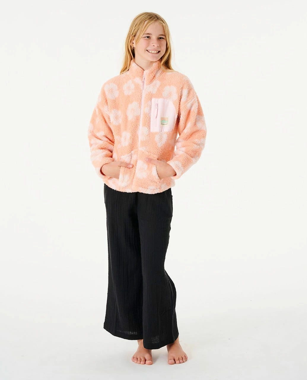 The Desert Waves Polar Fleece is a rad cosy girl’s pullover jumper. This epic sweater has a fun floral design, front pocket, kanga pocket, and front zip.