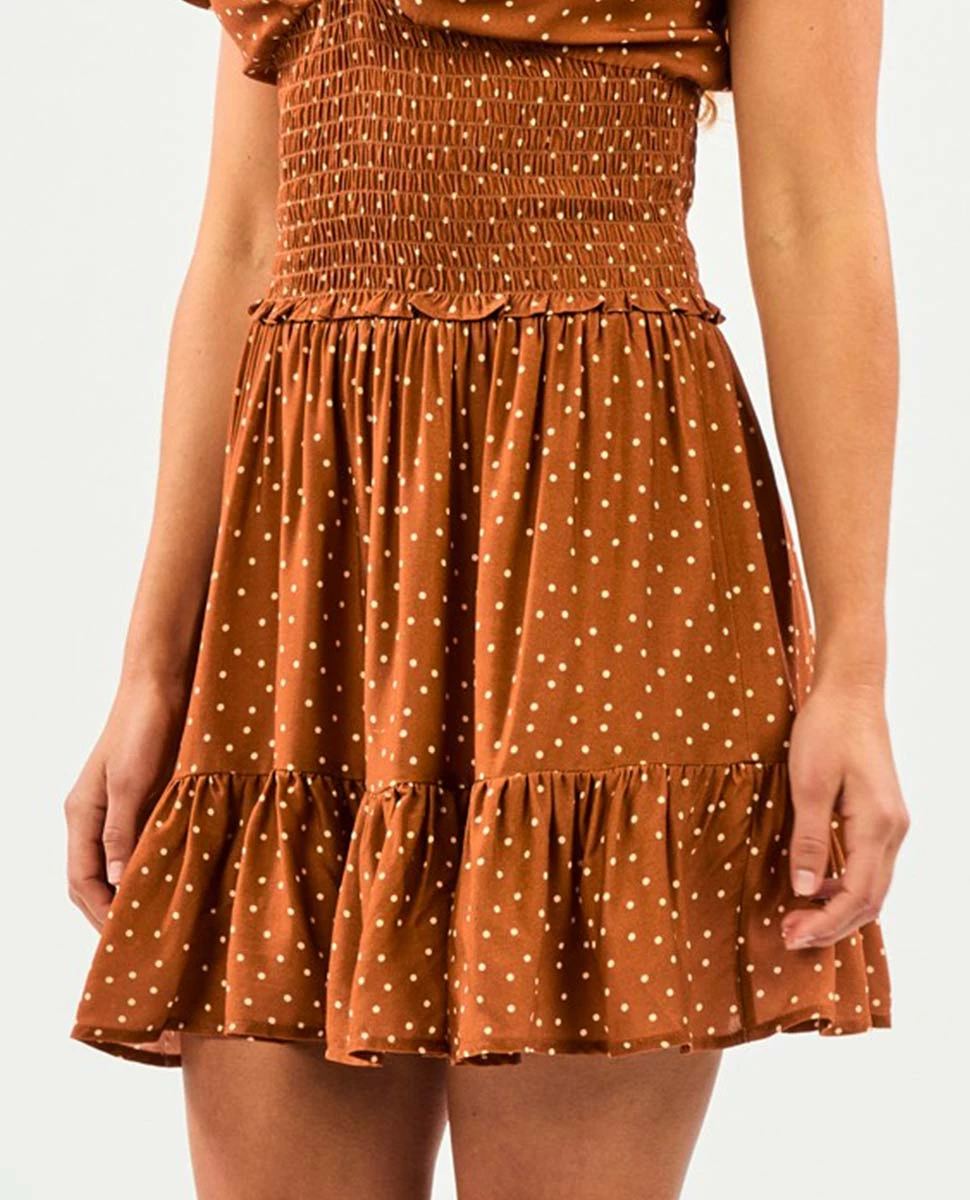 The Dreamer Mini Skirt is a fun summer style, with a short fit, smocked waist, and cute shirring details. Make the most of the sunshine with this scenic skirt with spots.