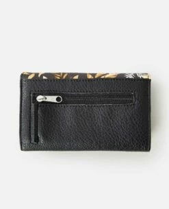 Keep your cards and cash organized with the Mixed Floral Mid Sized Wallet. This mid-sized wallet features a metal snap closure for security. It includes an ID window, multiple card slots, and a coin compartment, providing ample storage space. The embossed logo and sublimated prints add a stylish touch to the wallet’s design.