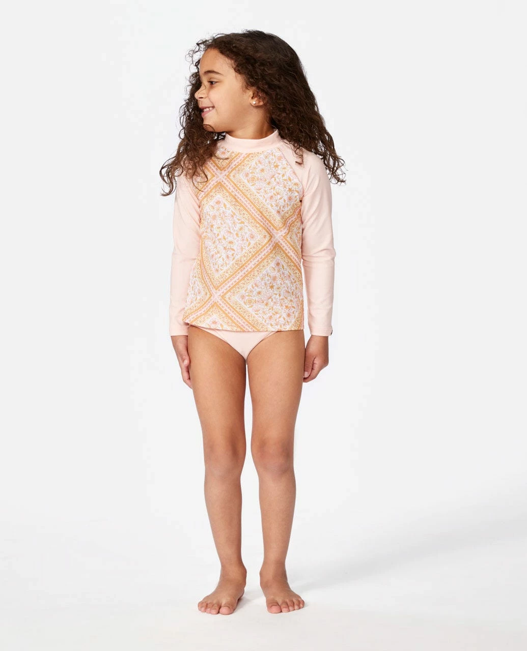 The Moonflower Two Piece Swim Set is a fashionable and protective choice for younger girls. With its SPF 50+ very high protection, it ensures optimal sun protection for their delicate skin. The placement print and yardage print panels add a trendy and playful touch to the swim set. Crafted with quality materials, it offers both comfort and durability. Whether they’re swimming, playing in the pool, or enjoying a day at the beach, the Moonflower Two Piece Swim Set is a reliable choice that keeps them looking stylish while providing sun protection.