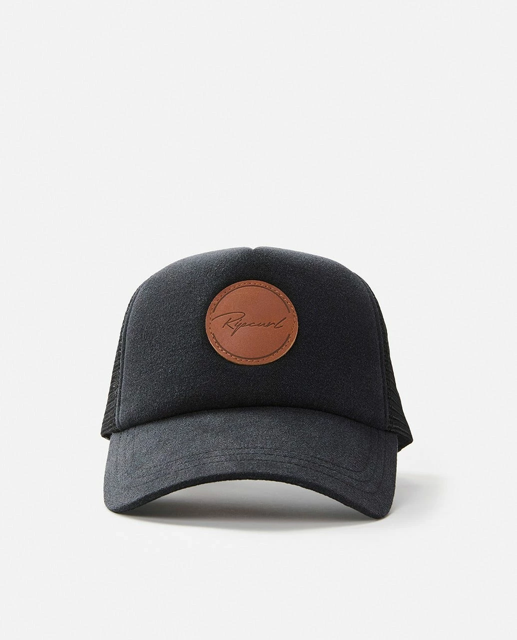 Complete your look with the Premium Surf Trucker Cap. This adjustable cap features a classic trucker style with a woven flag label and a vintage look. It has a curved peak and a mesh back for breathability. The cap also includes a badge for added style.