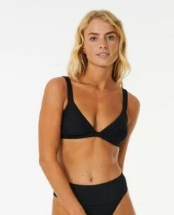The Premium Surf Wide Bind Triangle Bikini Top is a stylish and sustainable choice. It features a metal logo trim that adds a fashionable touch. The removable padding allows you to customize the level of support. The adjustable underbust and wide adjustable straps ensure a comfortable fit. This bikini top is made from recycled fabric, making it an eco-friendly option for your beachwear collection.