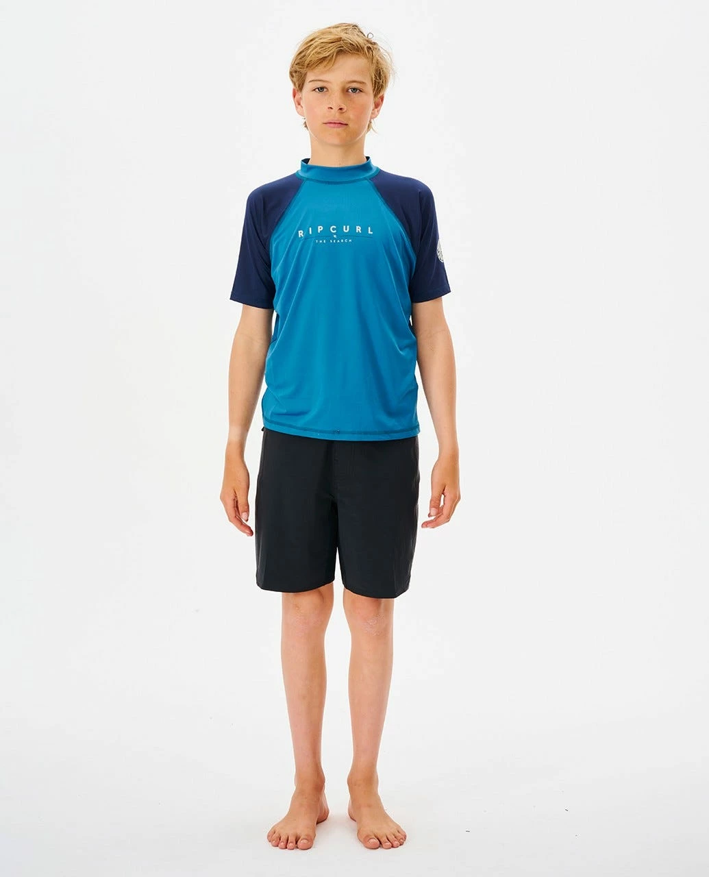 The Shockwaves Short Sleeve is a great boy’s UV rash vest designed in a relaxed fit for a comfortable result in and out of the water. Featuring an excellent sun protection rating of UPF 50+, an elastic boardshort loop to keep it perfectly in place, and front and sleeve print.