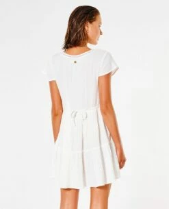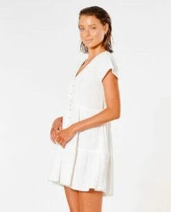The Summer Breeze Dress is a great women’s button through style perfect for hot summer days and nights. Featuring tie back detail, crotchet trim, V-neck and capped sleeves.