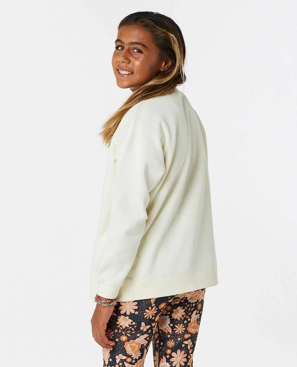 The Sun Catcher Crew is a cozy and fashionable option for girls aged 8 to 14 years. Made from cotton poly fleece fabric, this crewneck sweatshirt offers a standard fit for comfort. The stone wash gives it a unique and lived-in appearance, while the front print adds a stylish design. With a woven flag label for authenticity, this crewneck is perfect for casual and relaxed outfits.