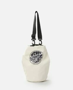 The Surf Series 10L Dry Bag is another epic beach bag featuring stash spot for wet items with its roll and clip wet/dry section, plus removeable shoulder strap, and new off white PVC construction.