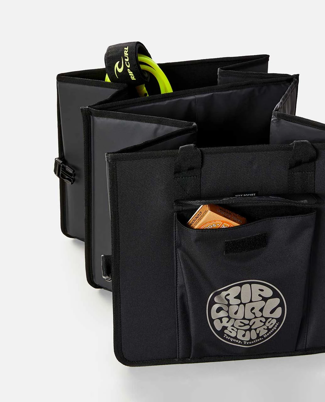 Is your car suffering from the regular assault of sand, seawater and bootie juice? Turn your messy surf-mobile into a streamlined shred machine with the Surf Series Anti-Chaos Bucket. This flat-packing car organiser is custom-built for the beach. Featuring two main compartments, dedicated fin organiser, tech pockets, and wet/dry sections for post surf storage, plus spots for your wax and sunscreen, and nifty carry handles to swiftly bring in and out of the car without spilling. It’s an epic surf hack that makes The Search a little less chaotic!