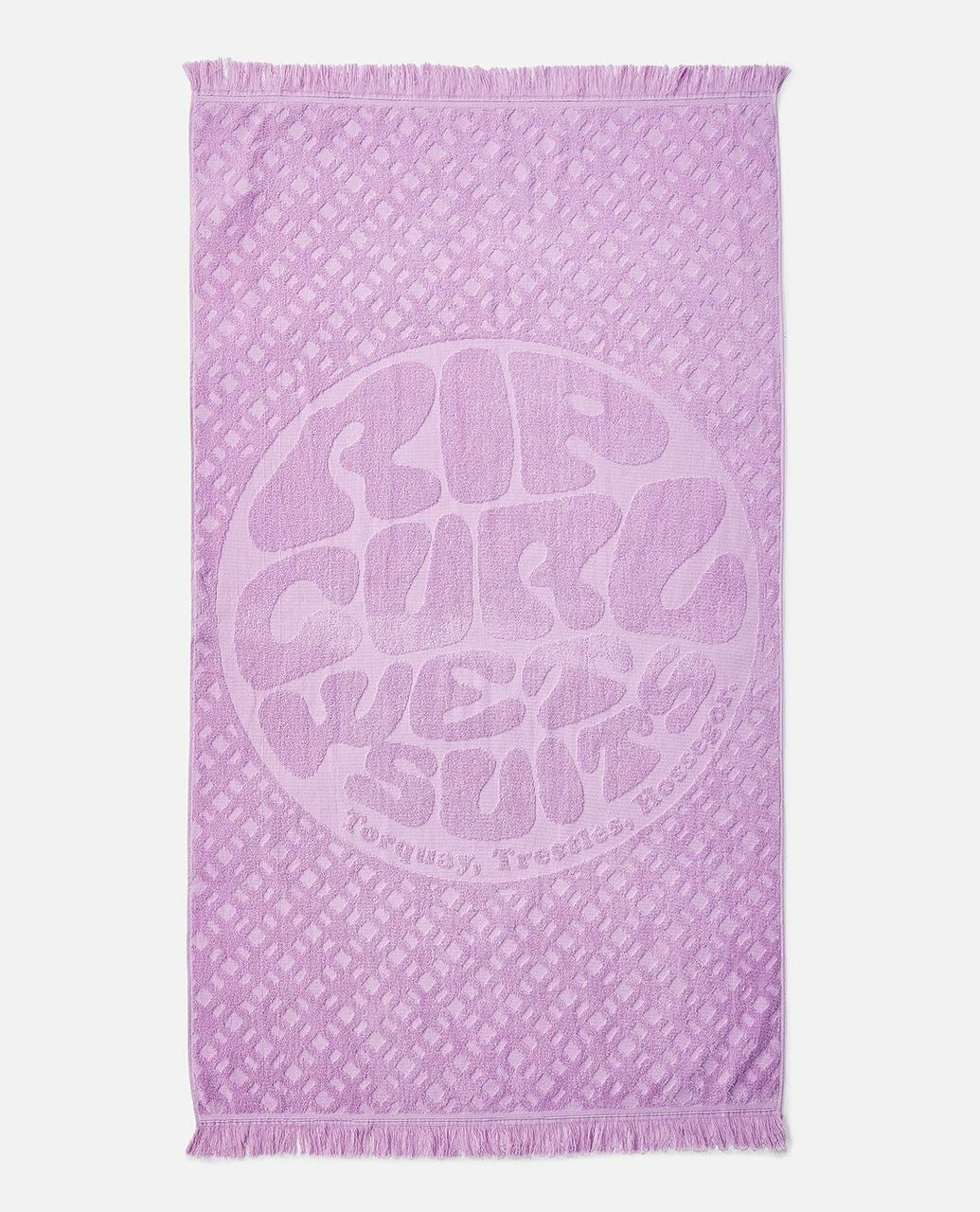 Made with a durable and soft fancy weave cotton, the Surfer Essentials Towel is a large beach towel perfect for those post-surf hangs on the beach. Designed with a high-low weave featuring the original Rip Curl wetsuit logo. Self fringe detailing.