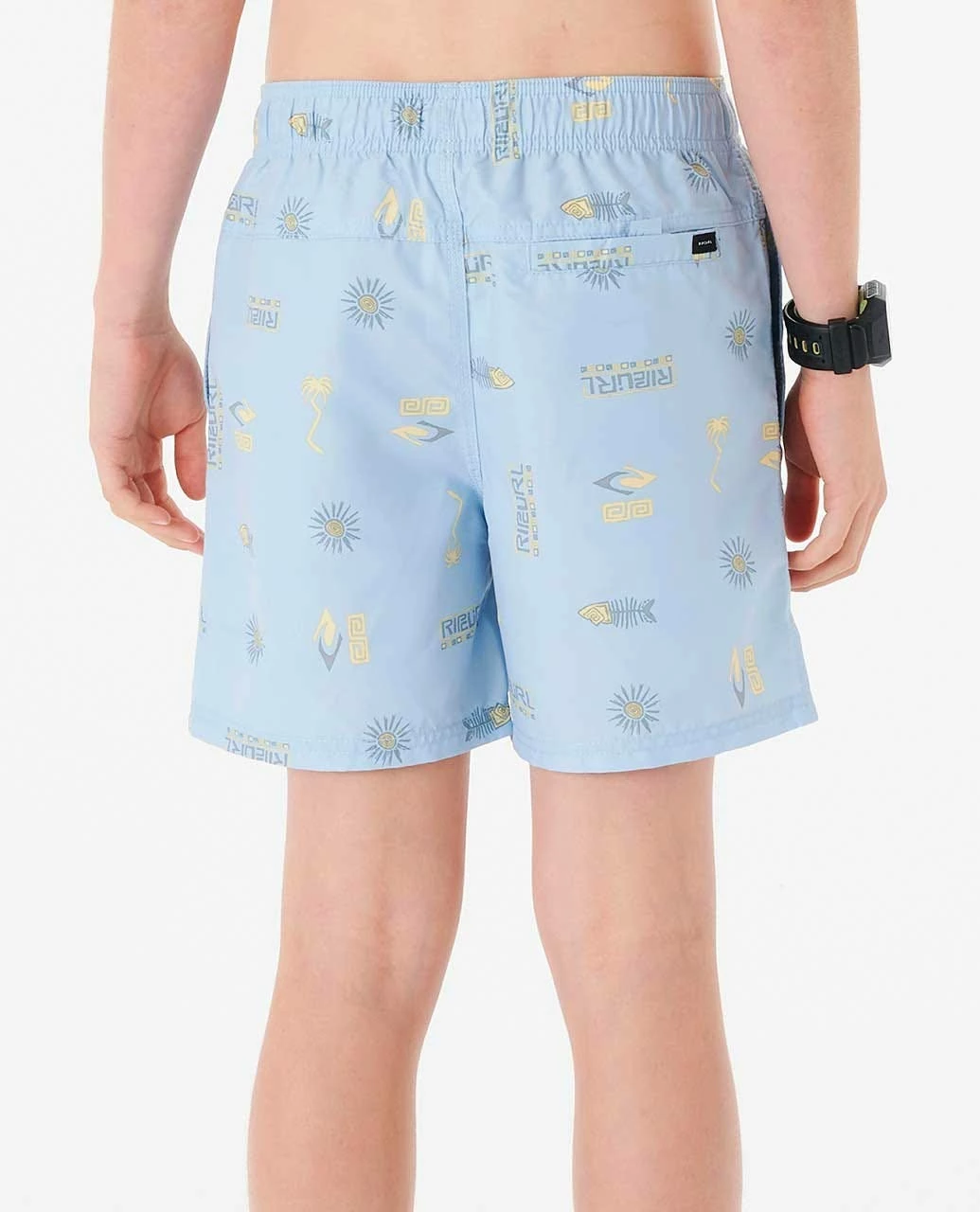 The Tube Heads Volley is a rad boy’s surf short. These trunks are designed in a classic volley fit with elastic waistband, mesh side pockets, a 15″ leg length, and recycled ripsuede fabric that holds its own in and out of the water. Featuring fun yardage print, and drawcord. Plus they’re treated with DWR for that quick-dry all day comfort.