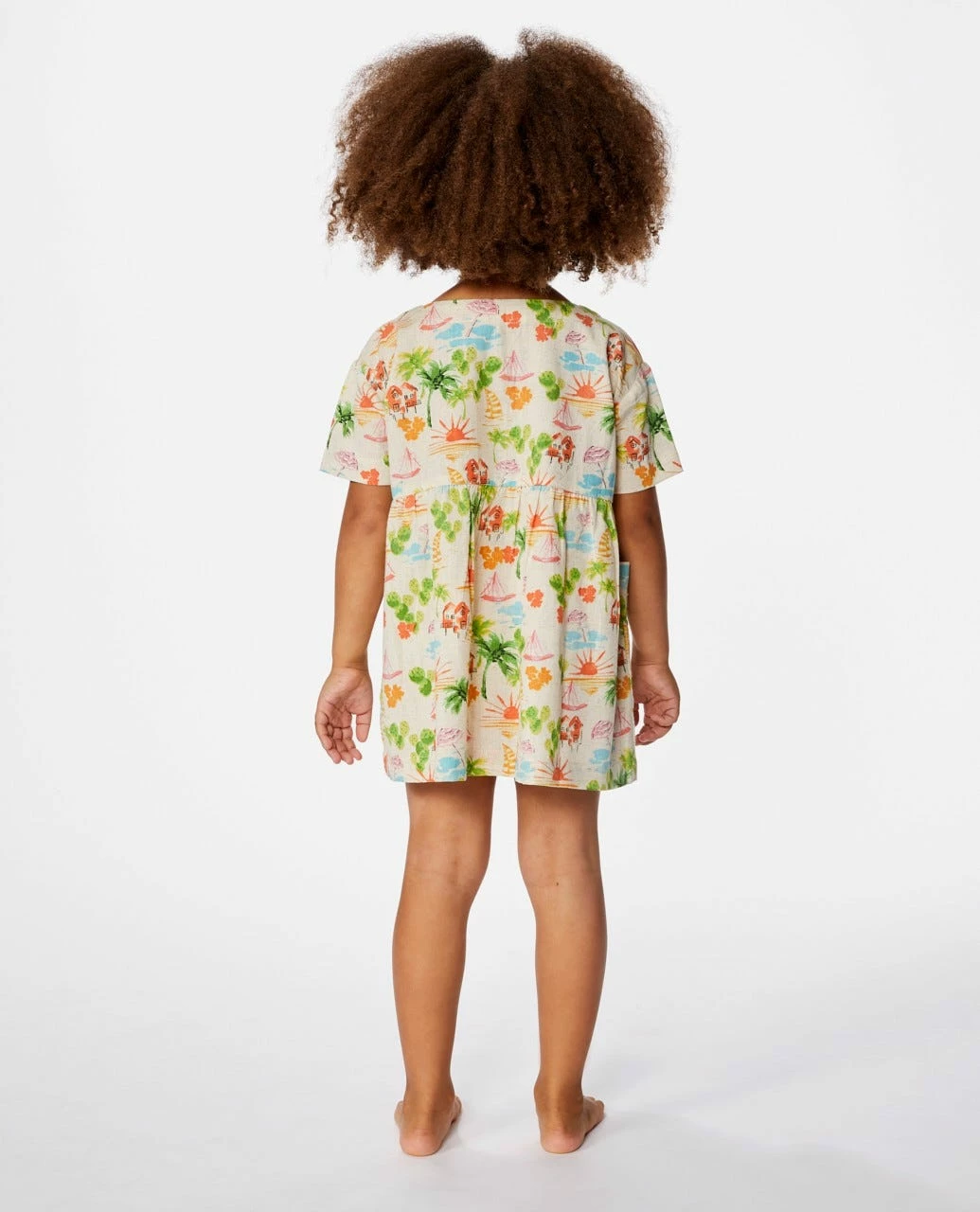 The Vacation Club Dress is a flowing and flattering summer style a linen blend with its vintage aesthetic and flowy vibe. Featuring button through design, side pockets, and a fun yardage print.