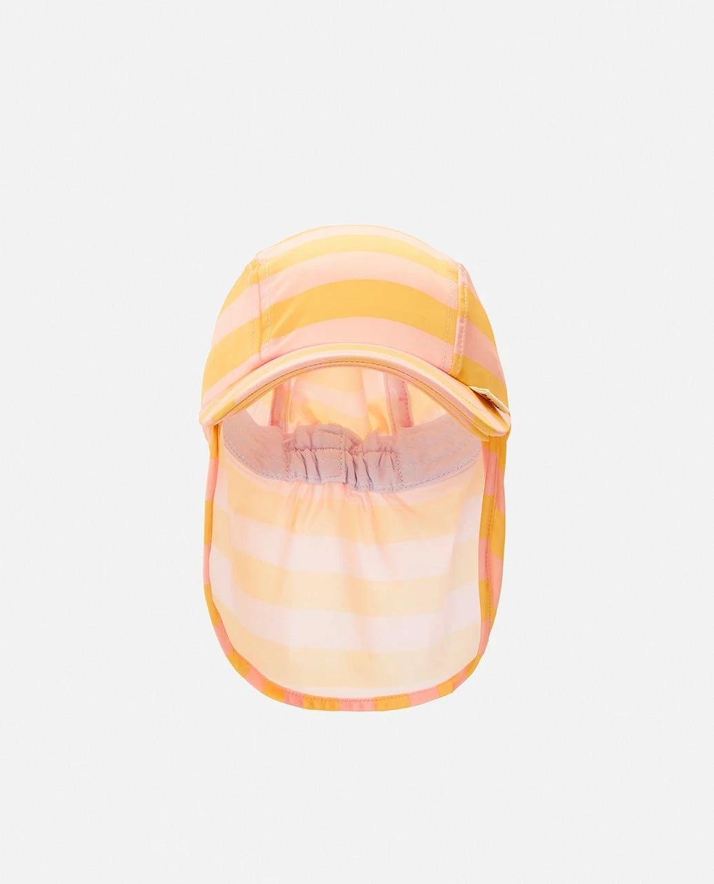 Features: UPF 50+ POLY /ELASTANE, Sun protection, All over yardage print, Match back to swim, Slight curve peak, Legionaire back flap, Woven flag label.