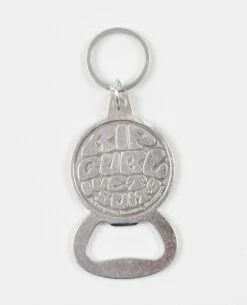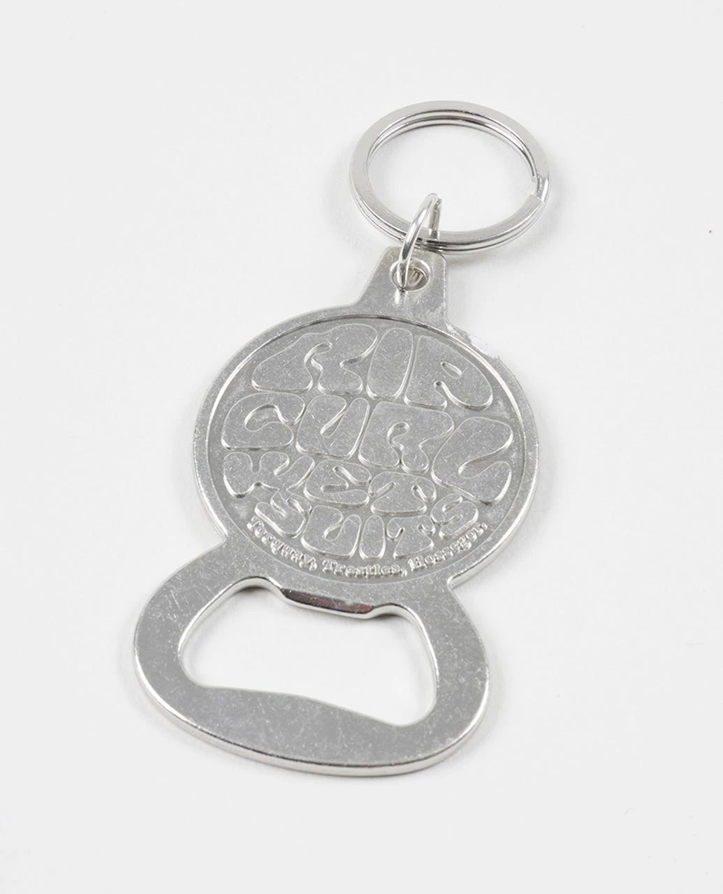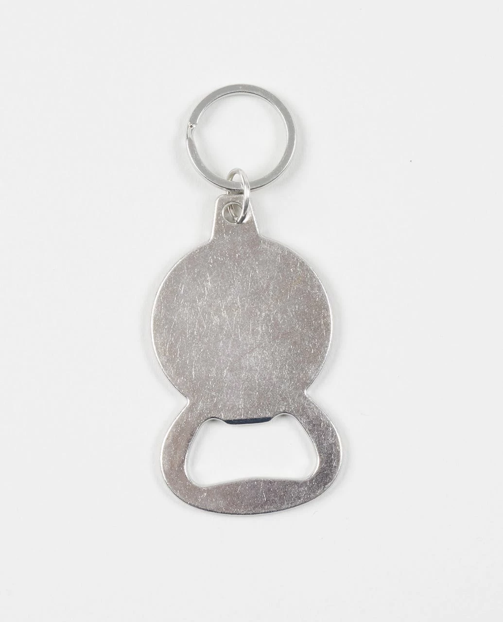 Classic metal bottle opener with wetty logo emboss and key ring attachment.